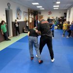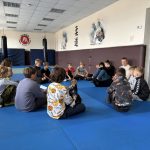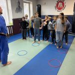 Pirmoji stovyklos diena prasidėjo nuo pažinties – vaikai susipažino, susiskirstė į komandas, kūrė savo stovyklos taisykles, šūkius ir plakatus. Po to laukė įdomūs kovos menų bei apsigynimo technikų užsiėmimai, linksmi žaidimai ir estafetės, pripildę dieną juoko bei energijos. Po sočių pietų stovyklautojai apsilankė Šakių rajono policijos komisariate, kur juos pasitiko bendruomenės pareigūnė Aušra Mockevičiūtė. Ji parengė smagią viktoriną, kurioje komandos puikiai pasirodė – teisingi atsakymai ir smalsūs klausimai sukūrė šiltą, žaismingą atmosferą. Vaikai taip pat galėjo pasimatuoti policininko liemenes, apžiūrėti tikrą tyrėjo lagaminą, užduoti rūpimus klausimus.