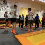 Antroji stovyklos diena stovyklautojams dovanojo kelionės džiaugsmą – visi vyko į Kauną, kur laukė smagus apsilankymas batutų parke „Jump Space“. Šokinėjimai, iššūkiai, rungtys ir juokas lydėjo visą laiką. Vaikai ne tik linksminosi, bet ir drąsiai bandė naujus triukus, stiprino kūną, lavino koordinaciją, pusiausvyrą bei pasitikėjimą savimi. Tokia veikla – puikus būdas derinti judėjimą ir džiaugsmą, mokytis dirbti komandoje bei pažinti savo galimybes.